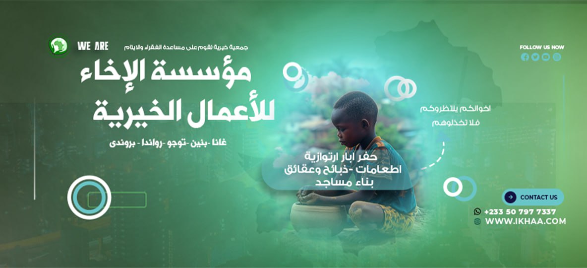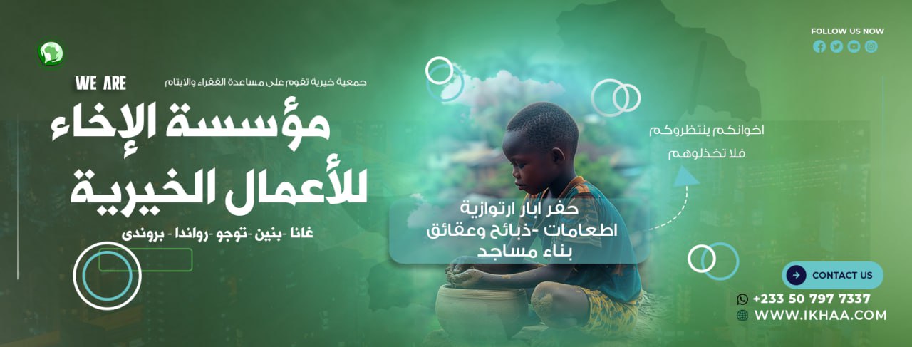 مؤسسه إخاء هي جمعية خيرية تعمل على تقديم المساعدات الإنسانية والتنموية، وتشمل دعم المحتاجين بالغذاء والملابس، والمساهمة في بناء المساجد، وحفر الآبار، بما يسهم في تحسين ظروف المعيشة وتعزيز الاستقرار المجتمعي. تنشط الجمعية في عدد من دول غرب إفريقيا، من بينها غانا وبنين وتوجو، وهي جمعية مشهرة وموثقة رسميًا، ومعتمدة لدى وزارة الخارجية والسفارات الخليجية. تأسست جمعية إخاء في دولة بنين عام 2016، ومنذ انطلاقها وهي تسعى إلى العمل الإنساني المنظم، القائم على الشفافية والاستدامة، لخدمة المجتمعات الأكثر احتياجًا.